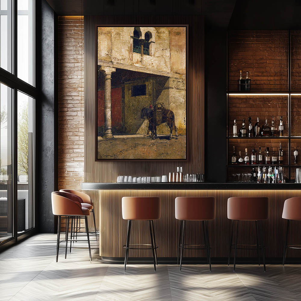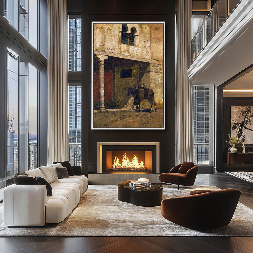 Animal Painting with a Horse and Figure in Front of a Building