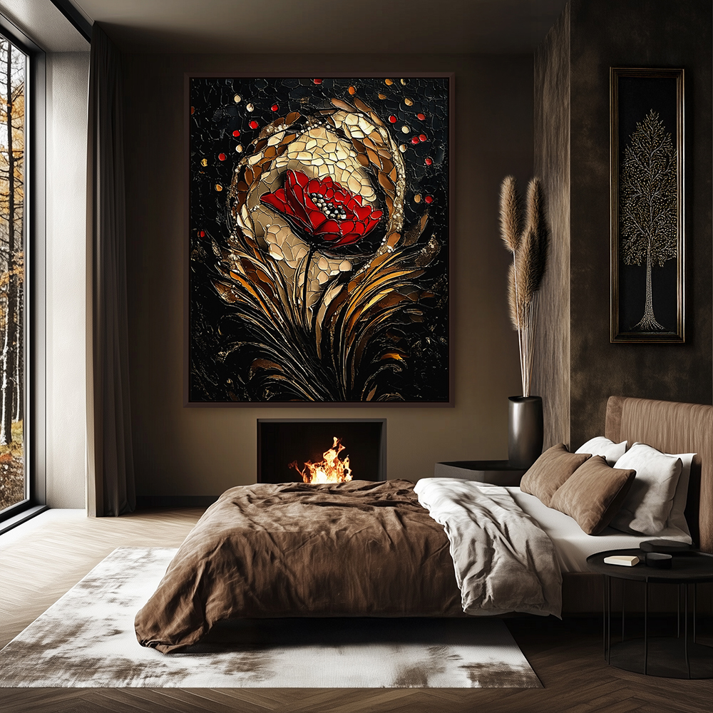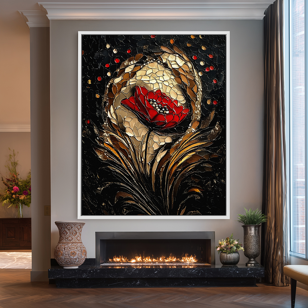 Floral wall art decor is perfect for bathrooms, bedrooms, and living rooms. This Bold Bloom Core Style Canvas Wall Art is available in five formats: vinyl wall peel, floral peel and stick, stretched canvas, metal wall art, and framed prints. You can choose from poster art, poster prints, framed canvas wall art with floater frames, or even metal prints. This floral wall art painting is versatile and works beautifully in any space.