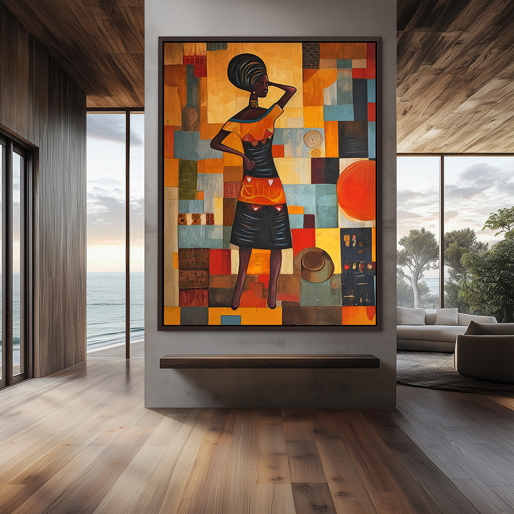 Figurative Paintings Wall Art – Modern Human Form on Canvas Wall Art framed with a Black Floater Frame for Home Decor, Wall Art with Caracter, Wall Decor for the Home