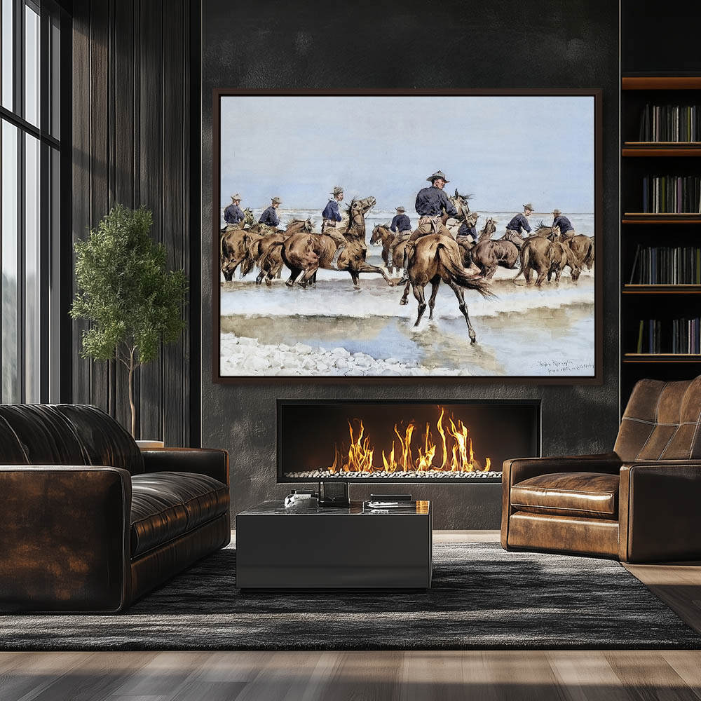Watering the Texas Horses of the Third Cavalry in Lake Michigan (recolor)