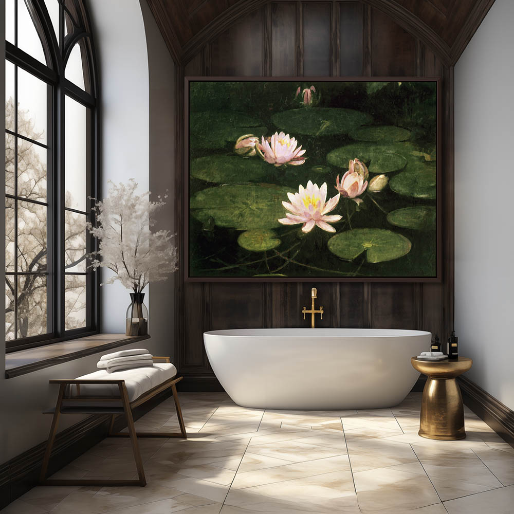 Vintage Pond Painting of Water Lilies