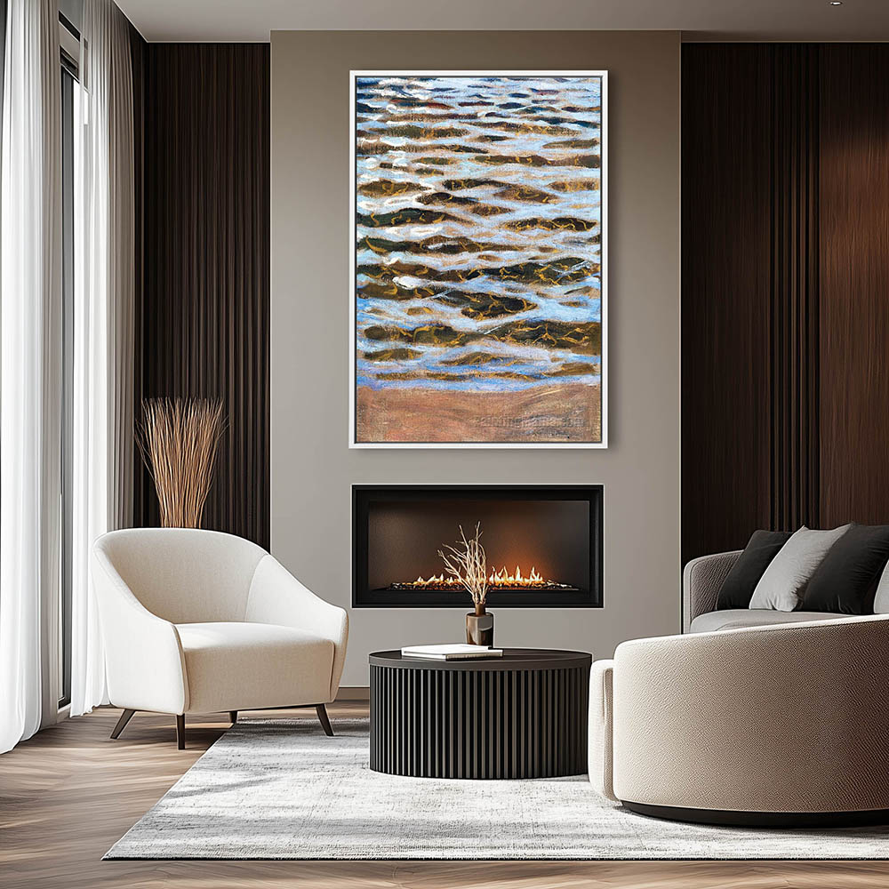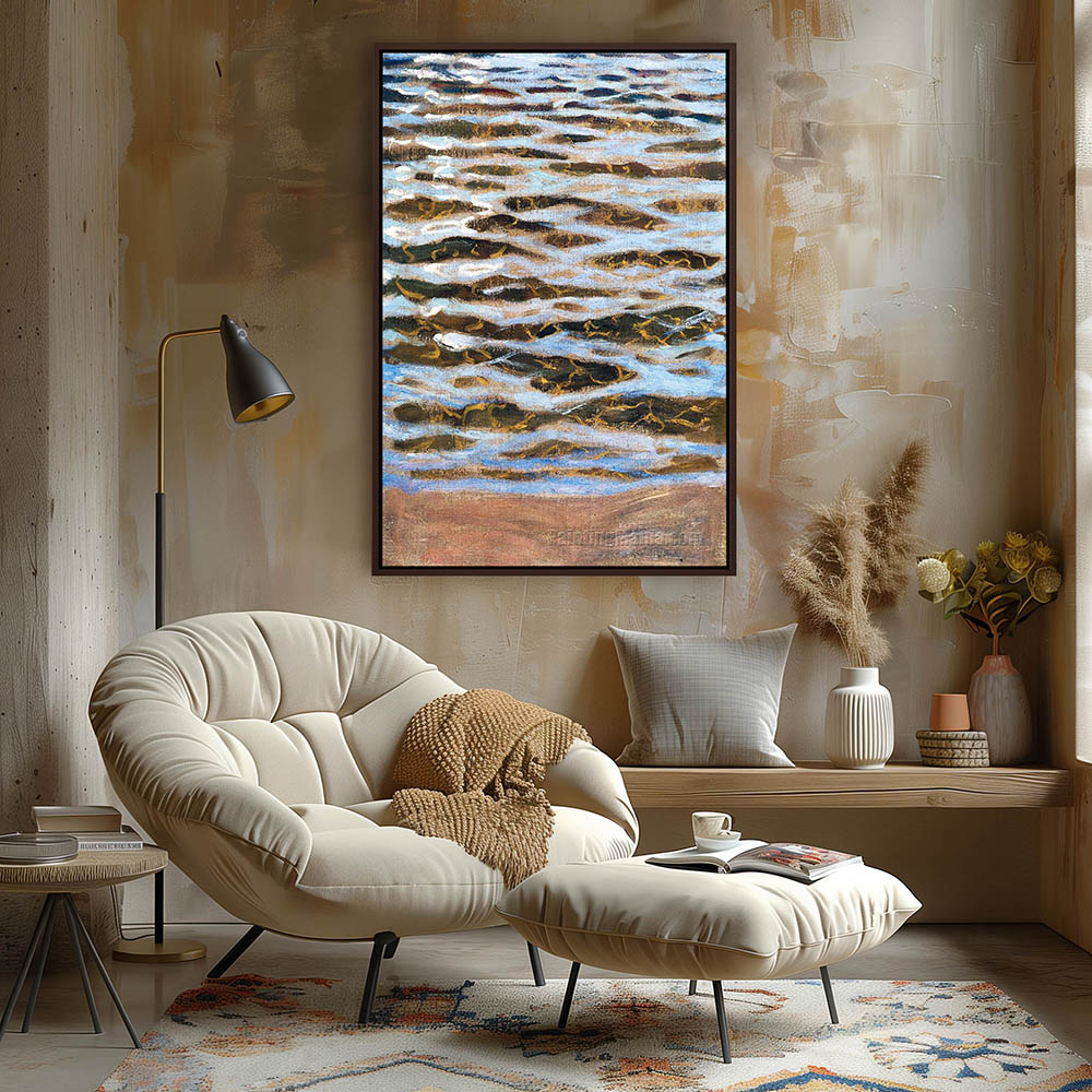 Lake Painting with Waves by the Shore