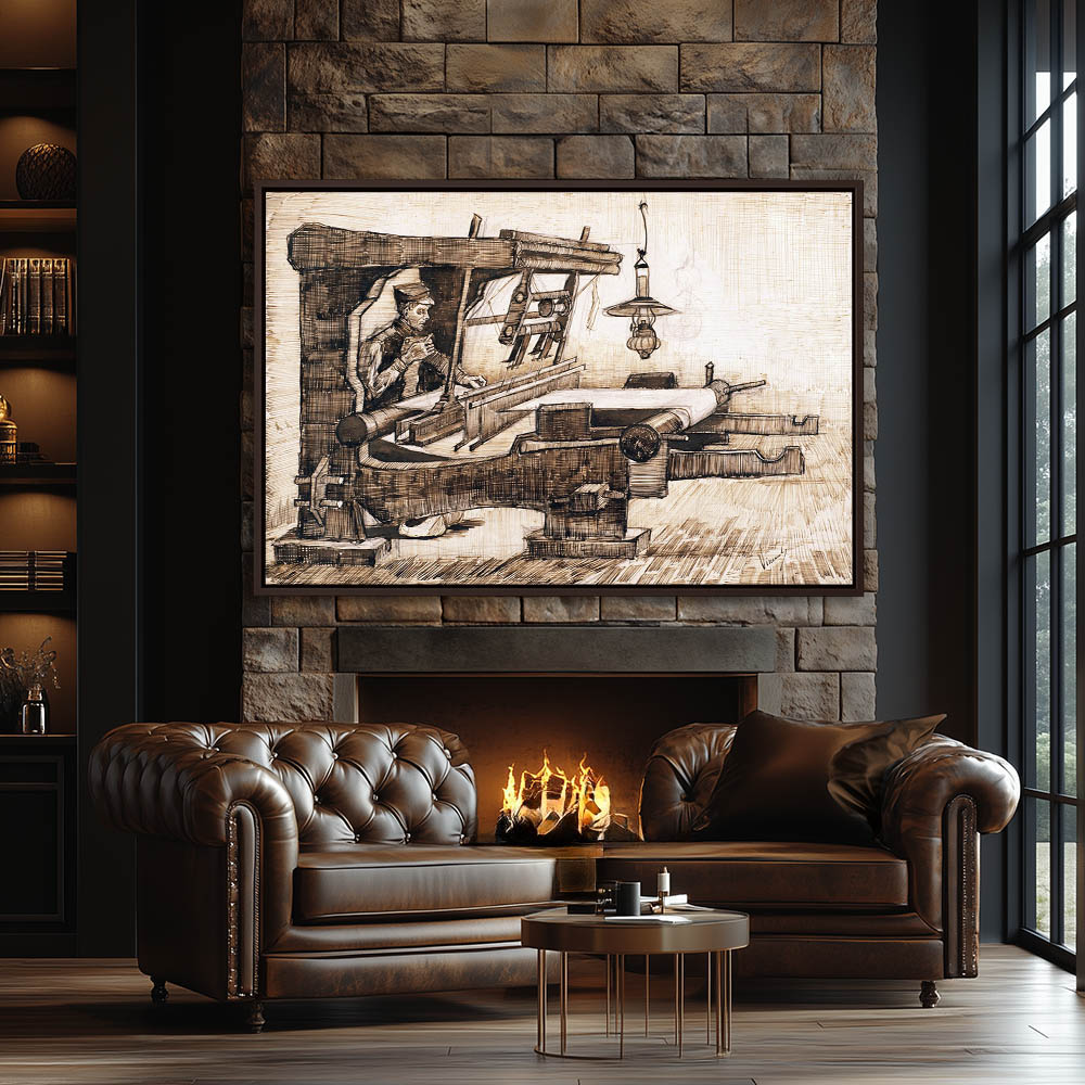 Drawing of a Weaver at a Loom