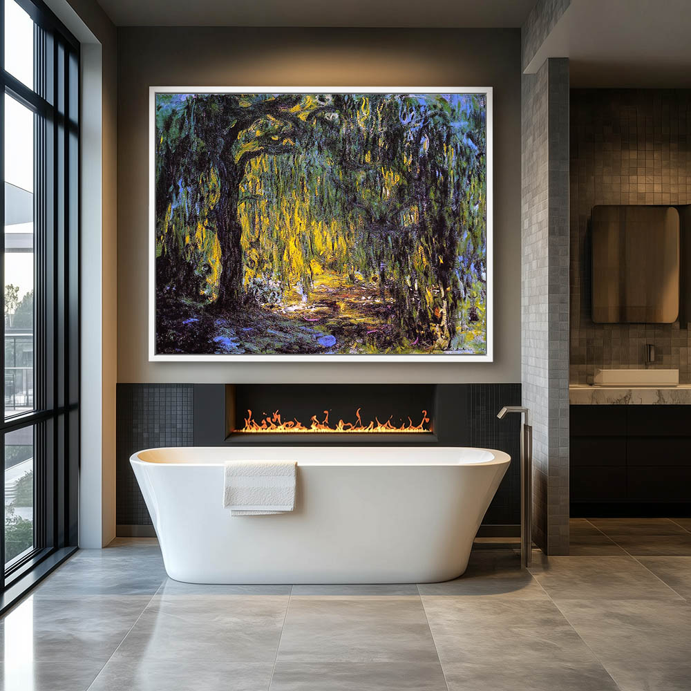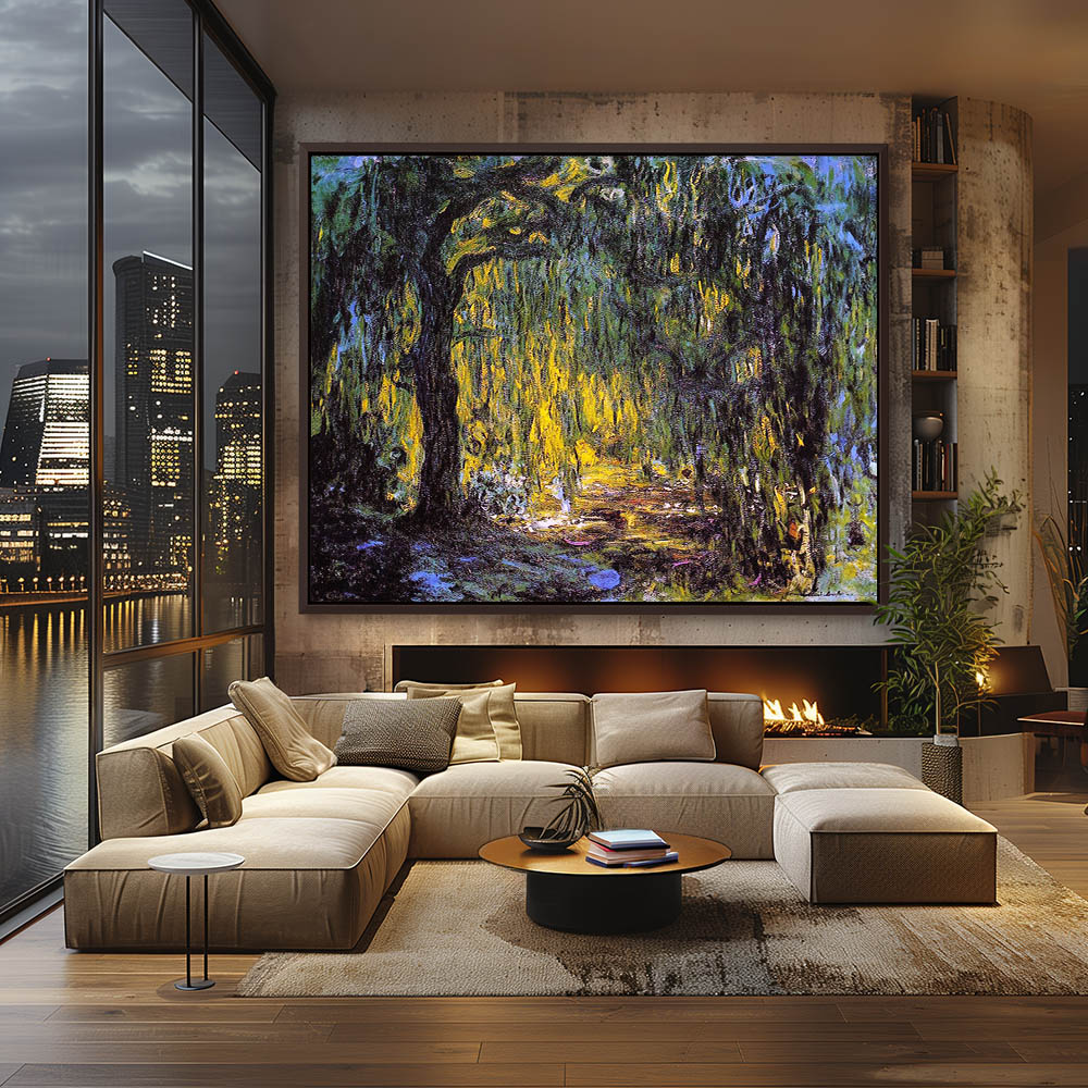 Vintage Landscape Painting of a Weeping Willow in a Garden