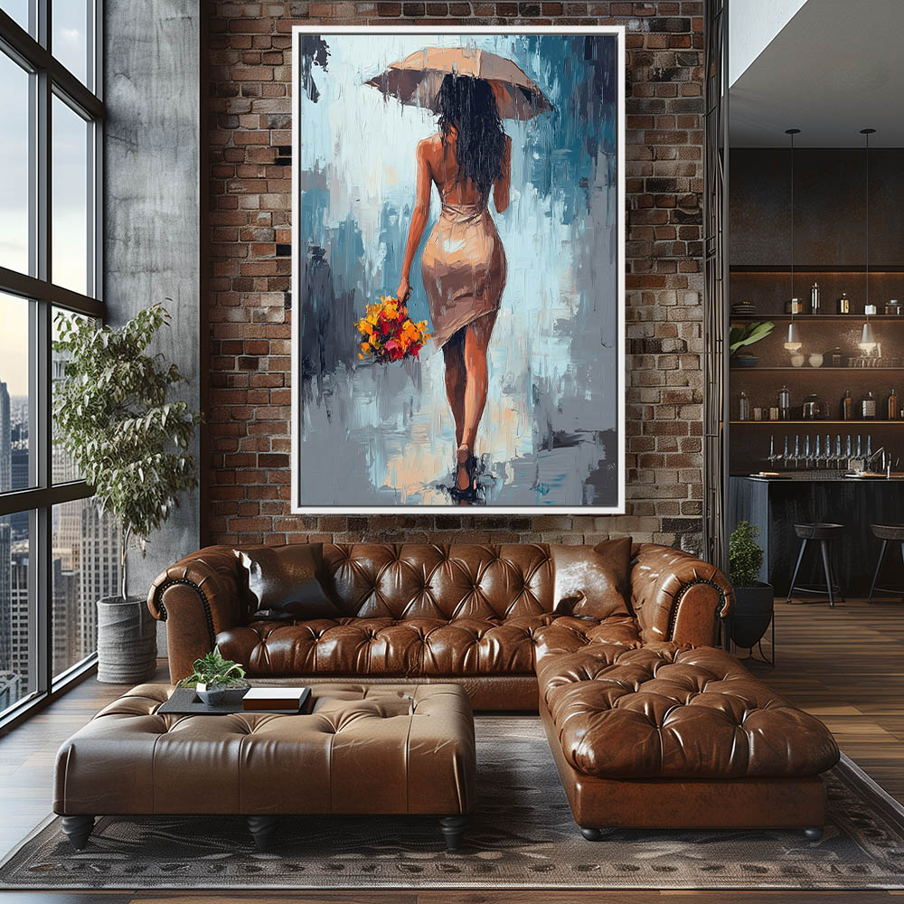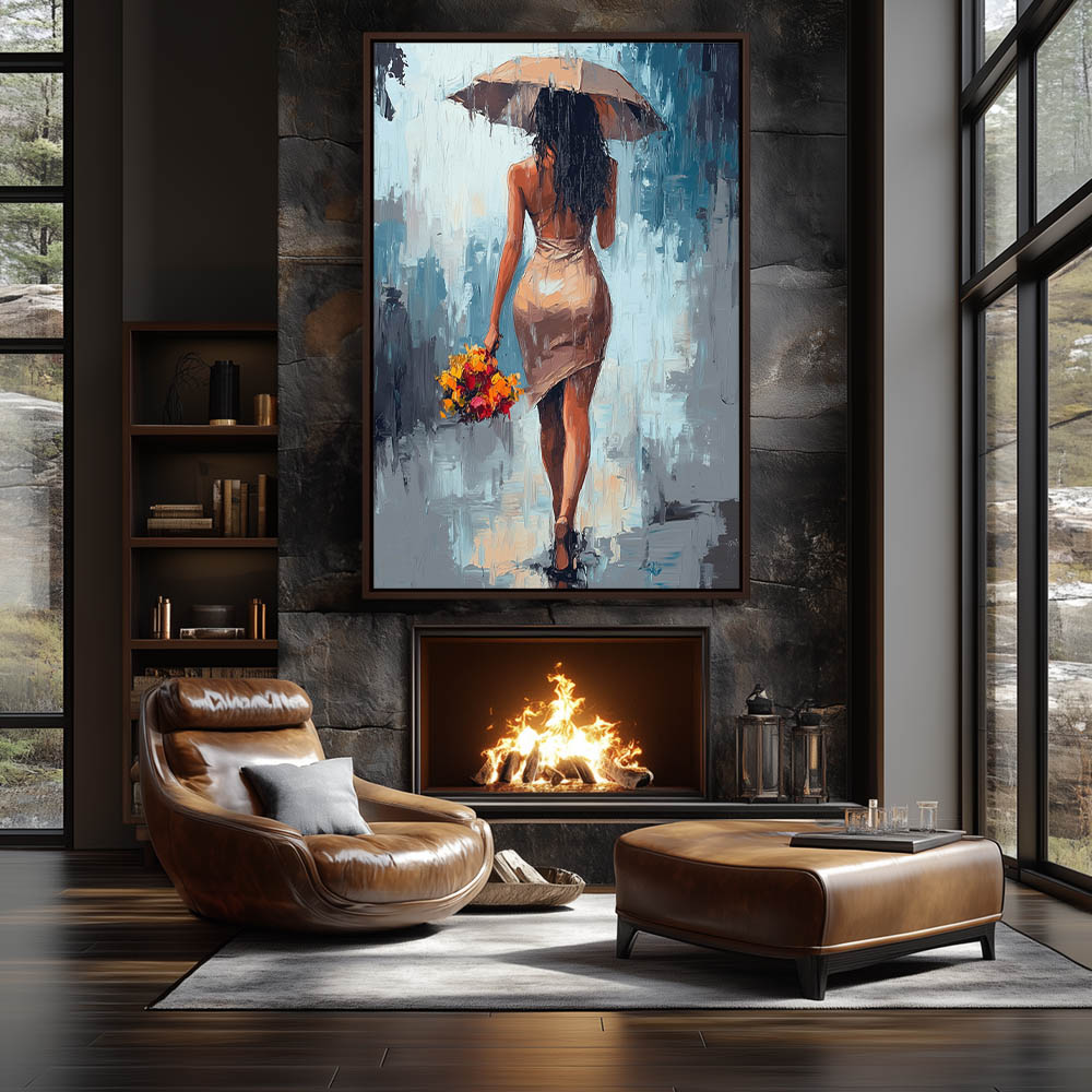 Abstract Painting of a Very Beautiful Woman Walking home in the Rain