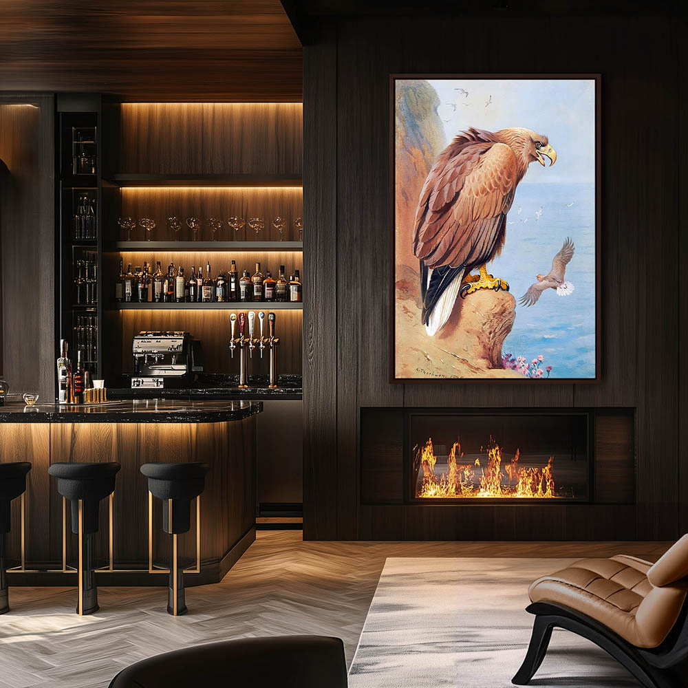 Painting of a Whitetailed Eagle on the Rock Overlooking the Sea