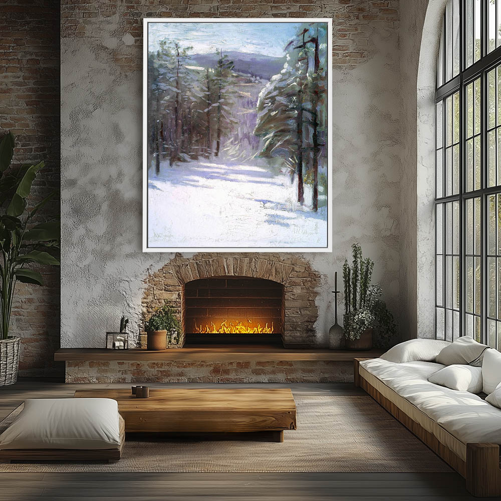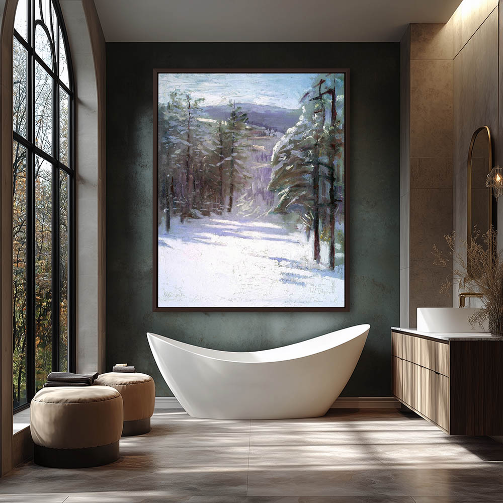 Vintage Landscape Painting of Mount Monadnock New Hampshire in Winter with Snow