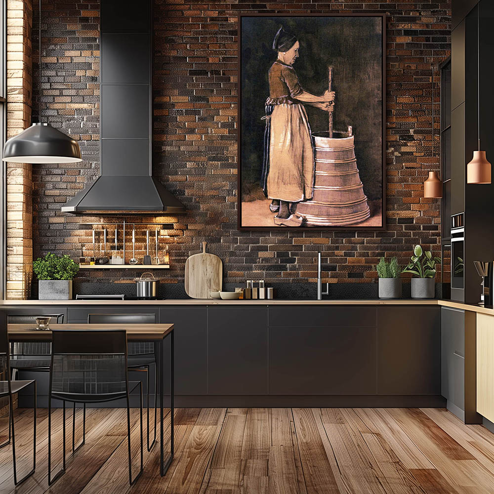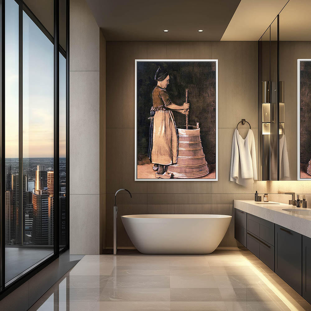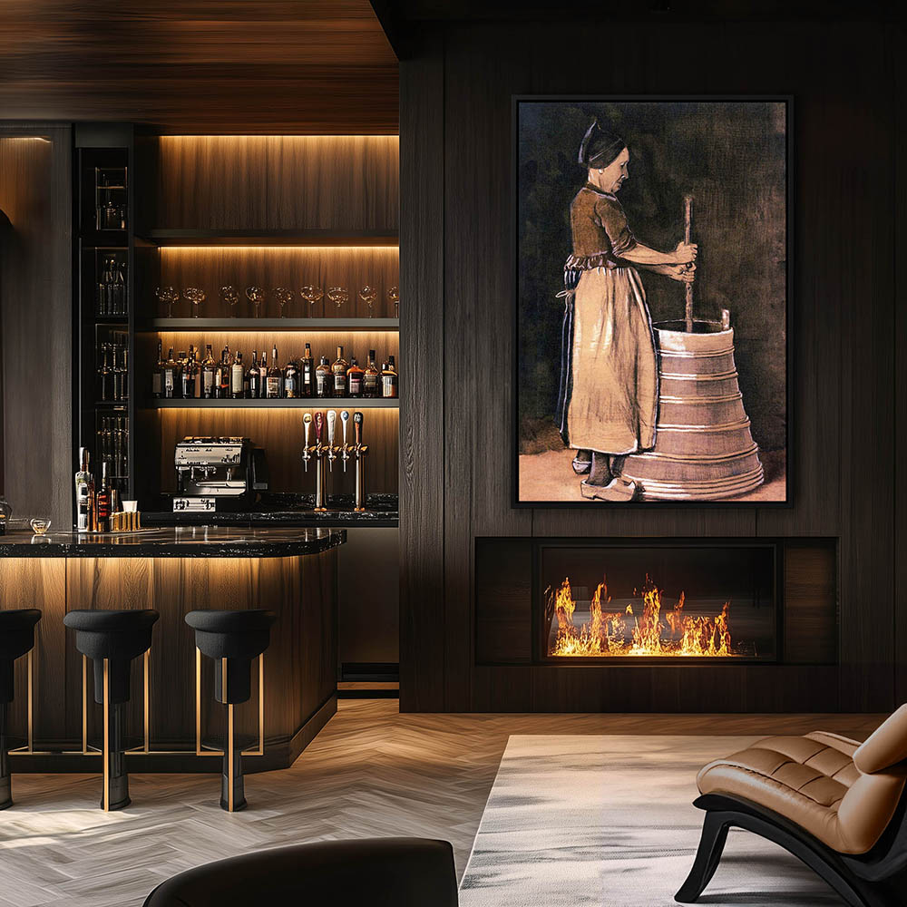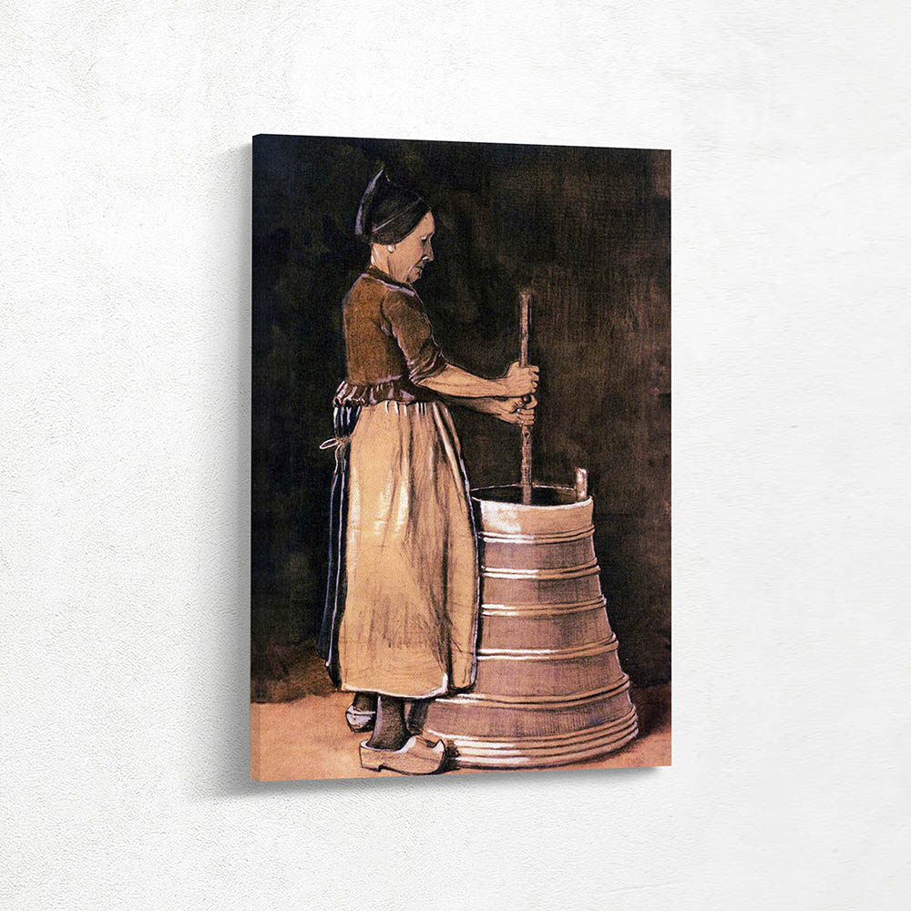 Impressionist Figurative Painting of a Figure at a Butter Churn