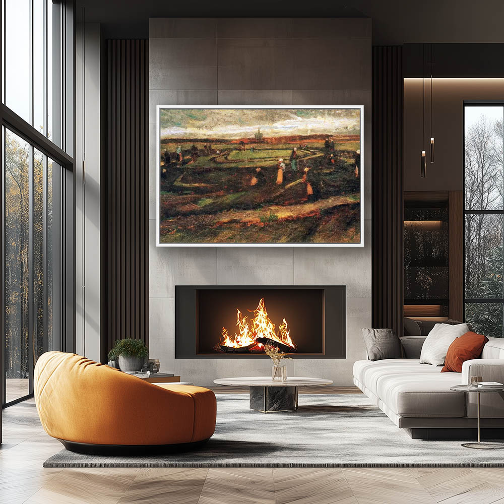 Impressionist Landscape Painting with Figures Mending Fishing Nets