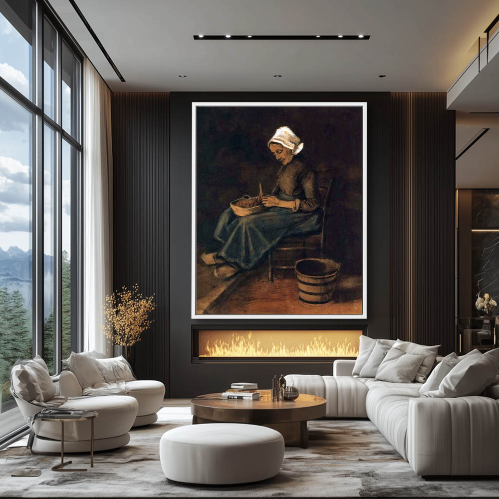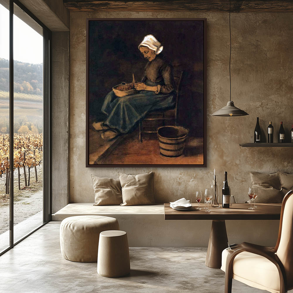 Impressionist Figurative Painting of a Figure Peeling Potatoes