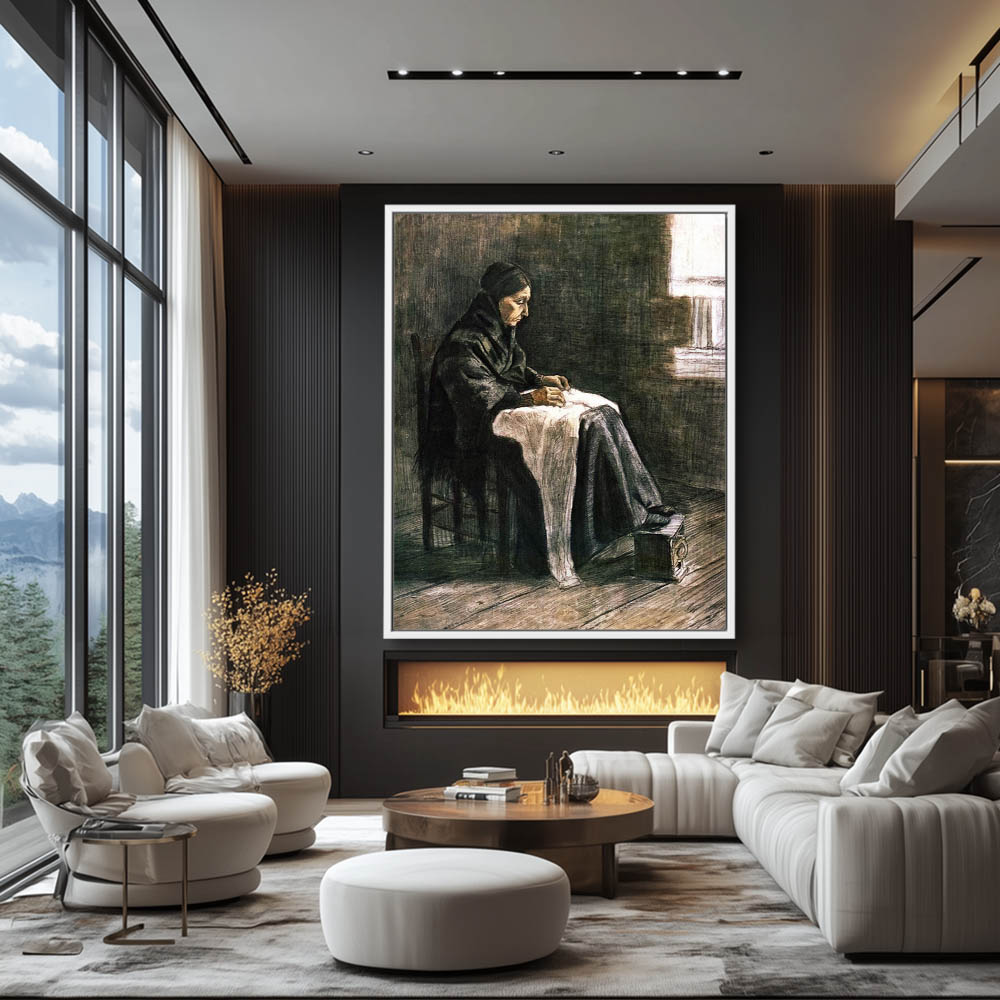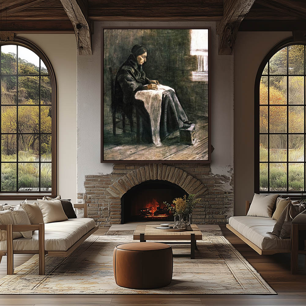 Woman with Shawl Sewing