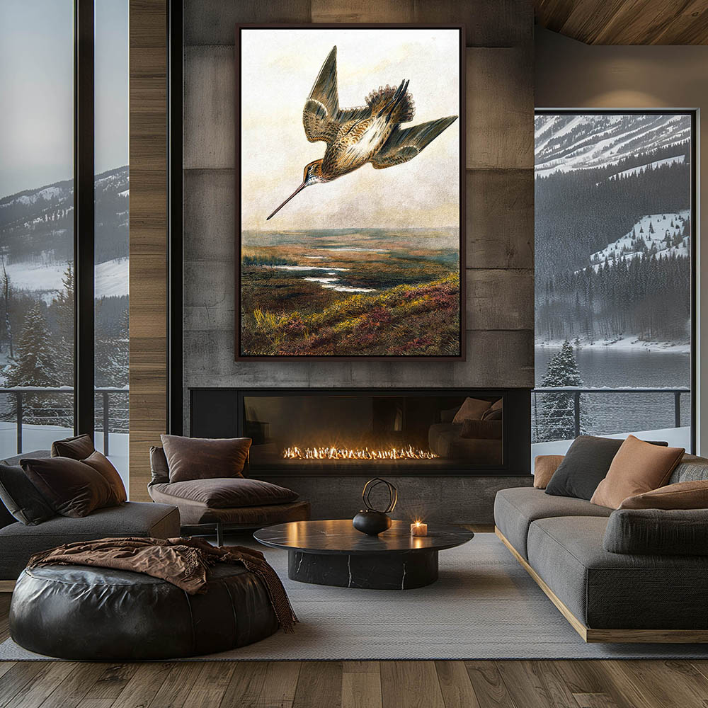 Landscape Painting with a Woodcock Flying