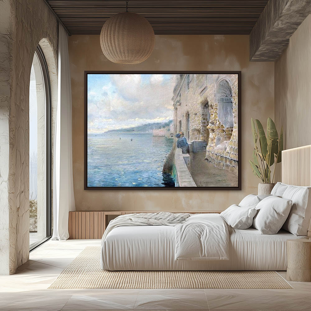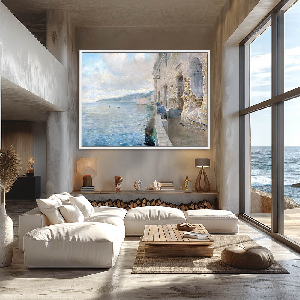 Coastal Painting with a Young Couple on a Terrace of Palazzo Don Anna