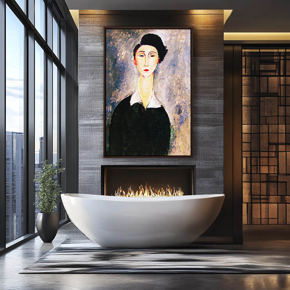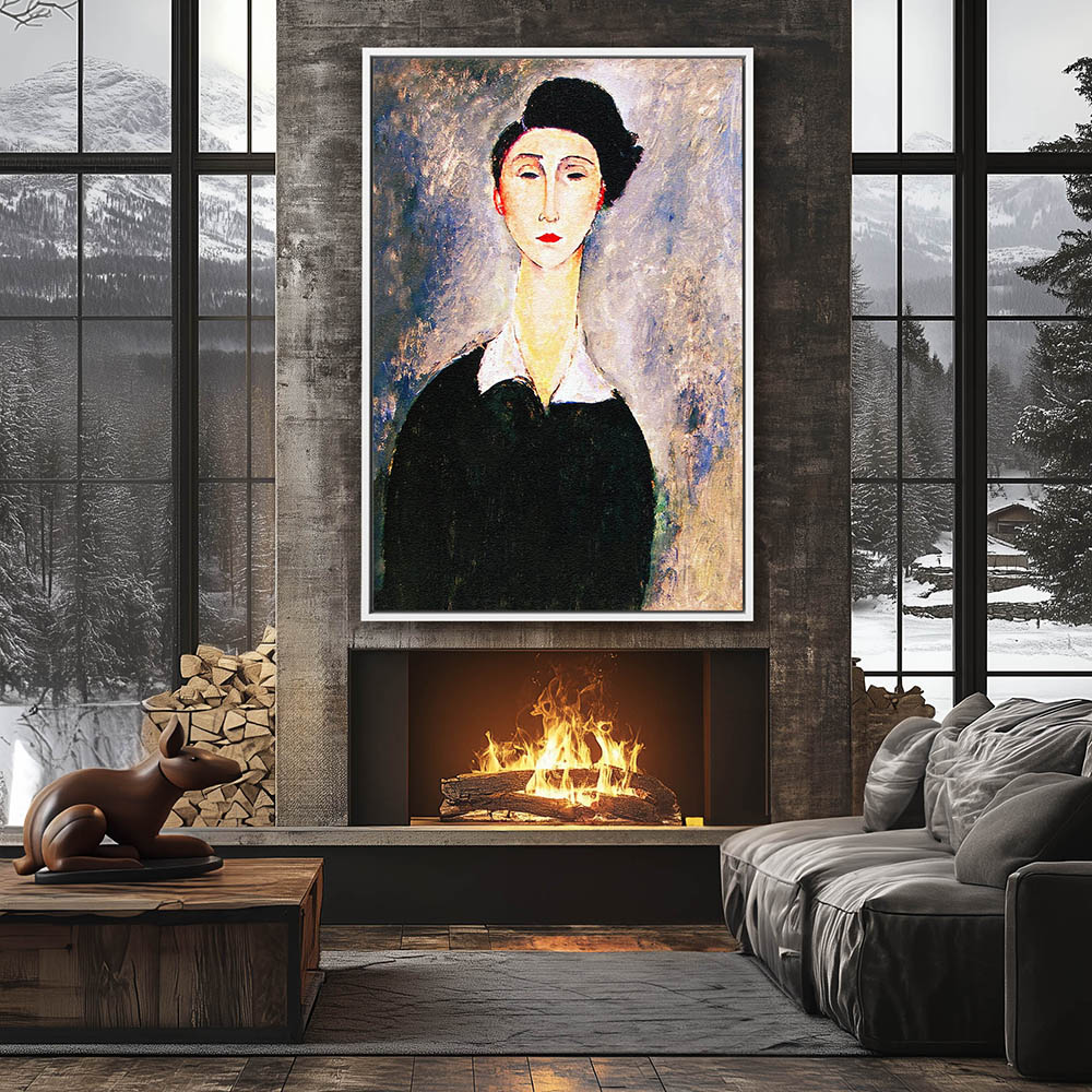 Abstract Figurative Portrait of a Woman with White Collar and Long Neck